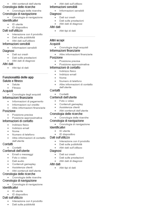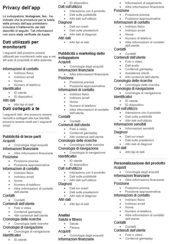 https://apps.apple.com/it/app/instagram/id389801252 , cercate il link “vedi Dettagli“ nella sezione Privacy dell’App.